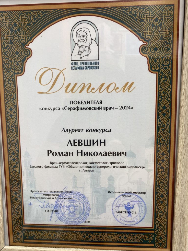 С 08.09.2008 по 27.12.2008 Лёвшин Р.Н. прошёл профессиональную переподготовку в ИПМО ГОУ ВПО ВГМА им. Н.Н. Бурденко по организации здравоохранения и общественному здоровью. В октябре 2009 года Лёвшин Роман Николаевич был удостоен областной премии им. Н.А. Семашко за внедрение инновационных достижений в практическом здравоохранении Липецкой области.